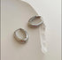 These are chunky, teardrop-shaped hoop earrings with a high-polish, Silver finish. Their bold, yet elegantly curved form gives them a modern and luxurious look. The design is a substantial, hollowed-out oval, offering a voluminous appearance without excessive weight. The earrings fasten with a simple hinge and post mechanism that is integrated seamlessly into the design, ensuring a secure and streamlined fit. They are a statement piece, perfect for adding a touch of contemporary glamour to both casual and formal outfits.